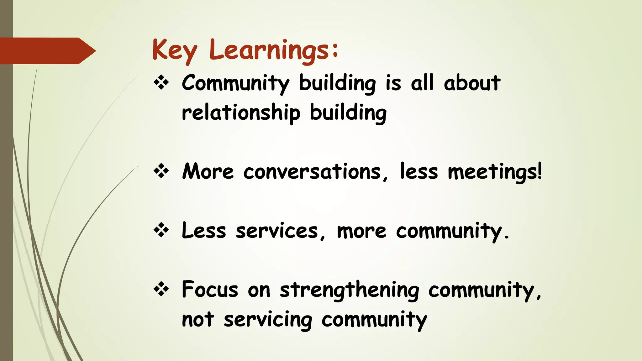 - Community building is all about relationship building