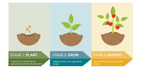 - provide an overview of the Agriculture Economic Development guide and its three stages: Plant, Grow and Harvest